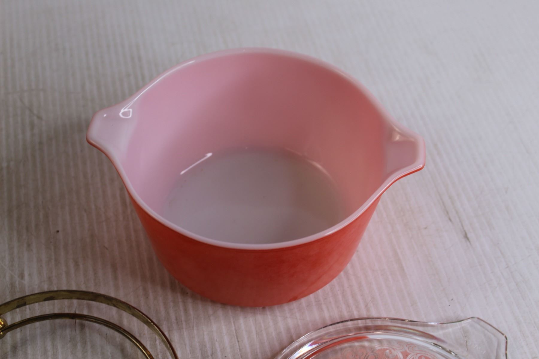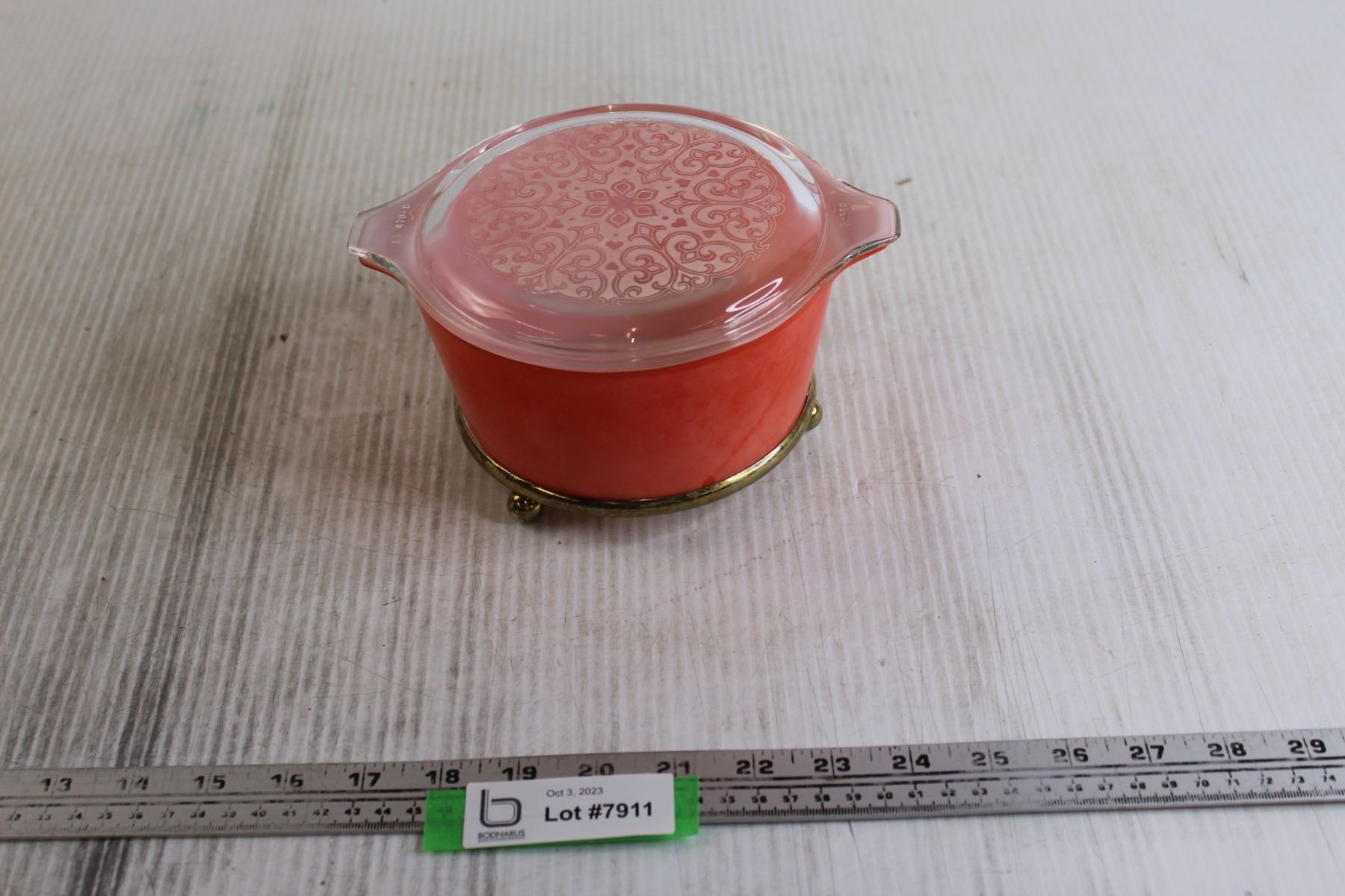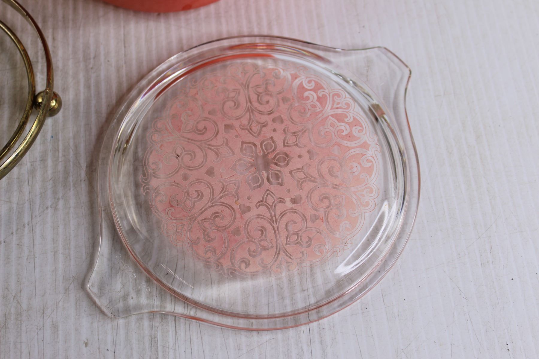 Faded "Celtic Floral" Pink Pyrex Casserole with Trivet