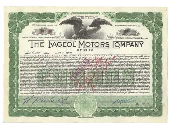 1925, Ohio. Stock certificate for 25 shares. Green/Black. Vignette of eagle with spread wings at top center. Stamp and pen cancelled. Very Fine.