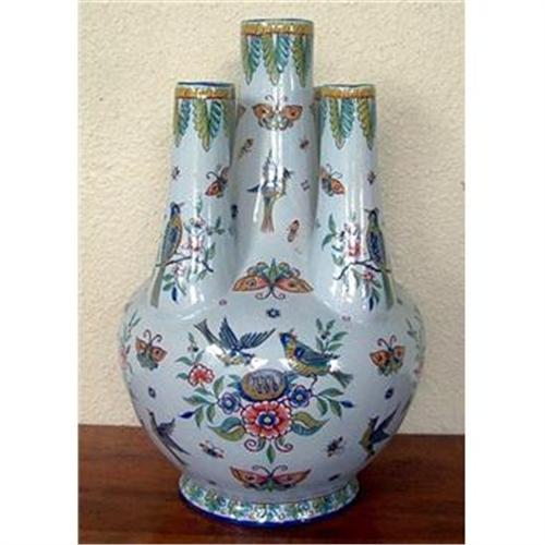 <tr><td>Title:Faience Large 5 Stem Tulip Vase Desvres c1890</td></tr>
