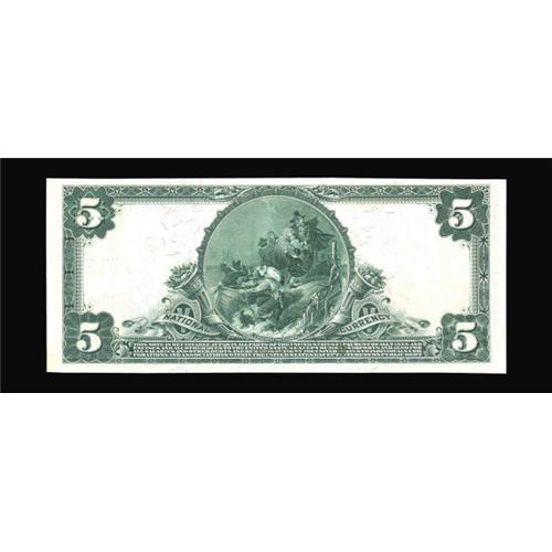 <B>Fairbanks, AK</B></I> - $5 1902 Red Seal Fr. 587 <B>First NB</B></I> Ch. # (P)7718<BR>This is a bright and eye catching Alaska Red Seal which is perfect for any state set. As are virtually all of the reported examples, it is a new note cut from a sheet some thirty years ago. Like most, it acquired a bit of handling along the way, which accounts for the assigned grade of <B>About Uncirculated.</B></I> Without careful examination, this pen signed and well margined specimen appears gem, with great color and bright paper. Expect to see a realization in the vicinity of...<BR><I>From The Plymouth Rock Collection</B></I>