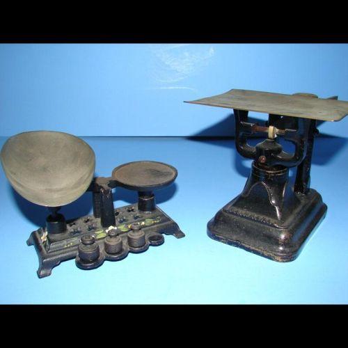 Black Cast Iron Fairbanks Scale with flat top. Small Cast Iron Scale with small weights. Very good condi