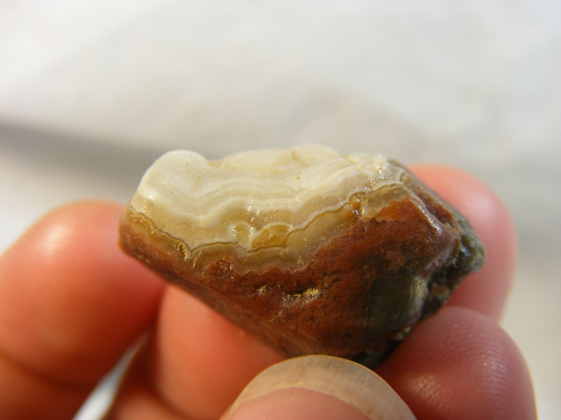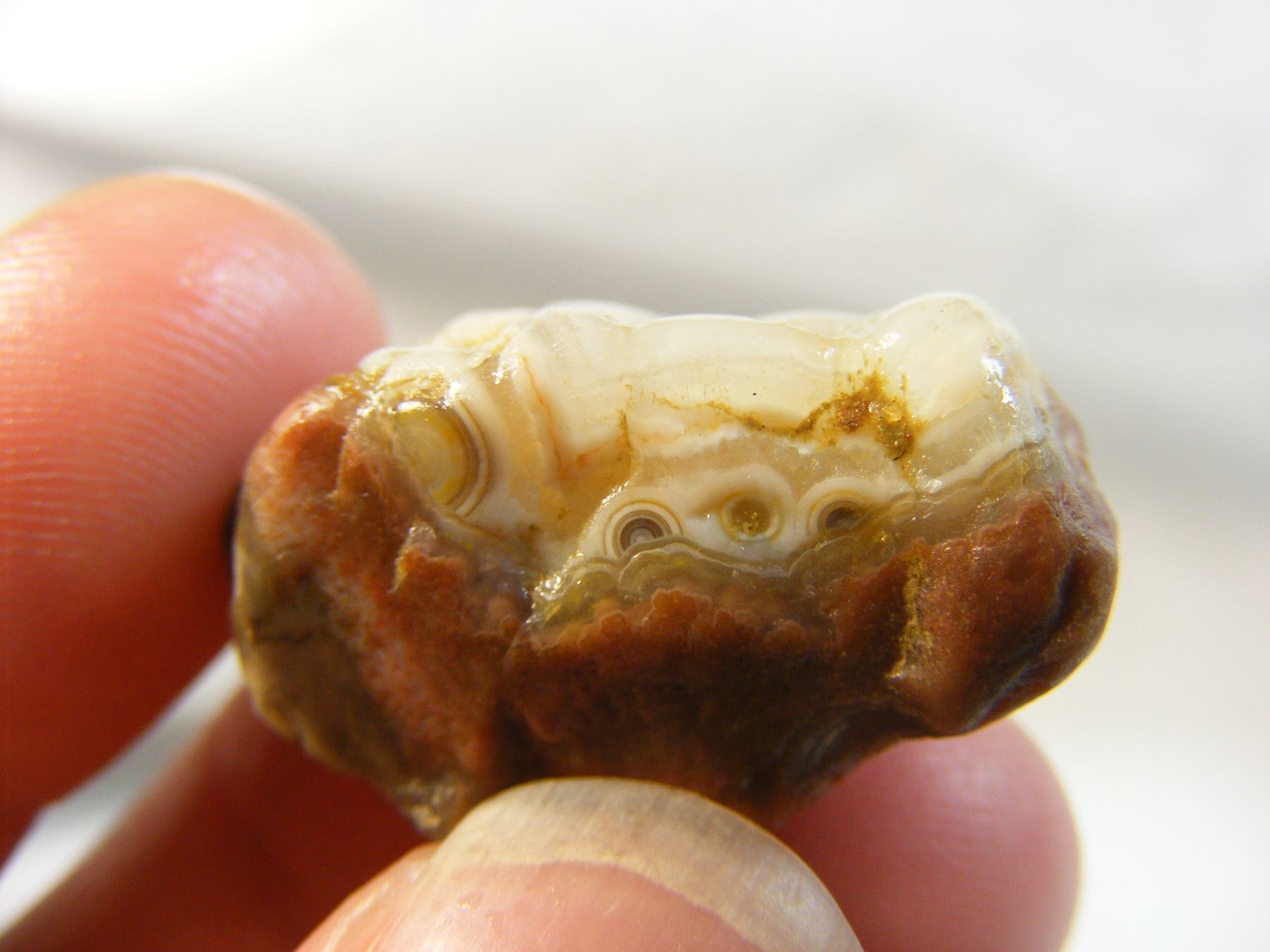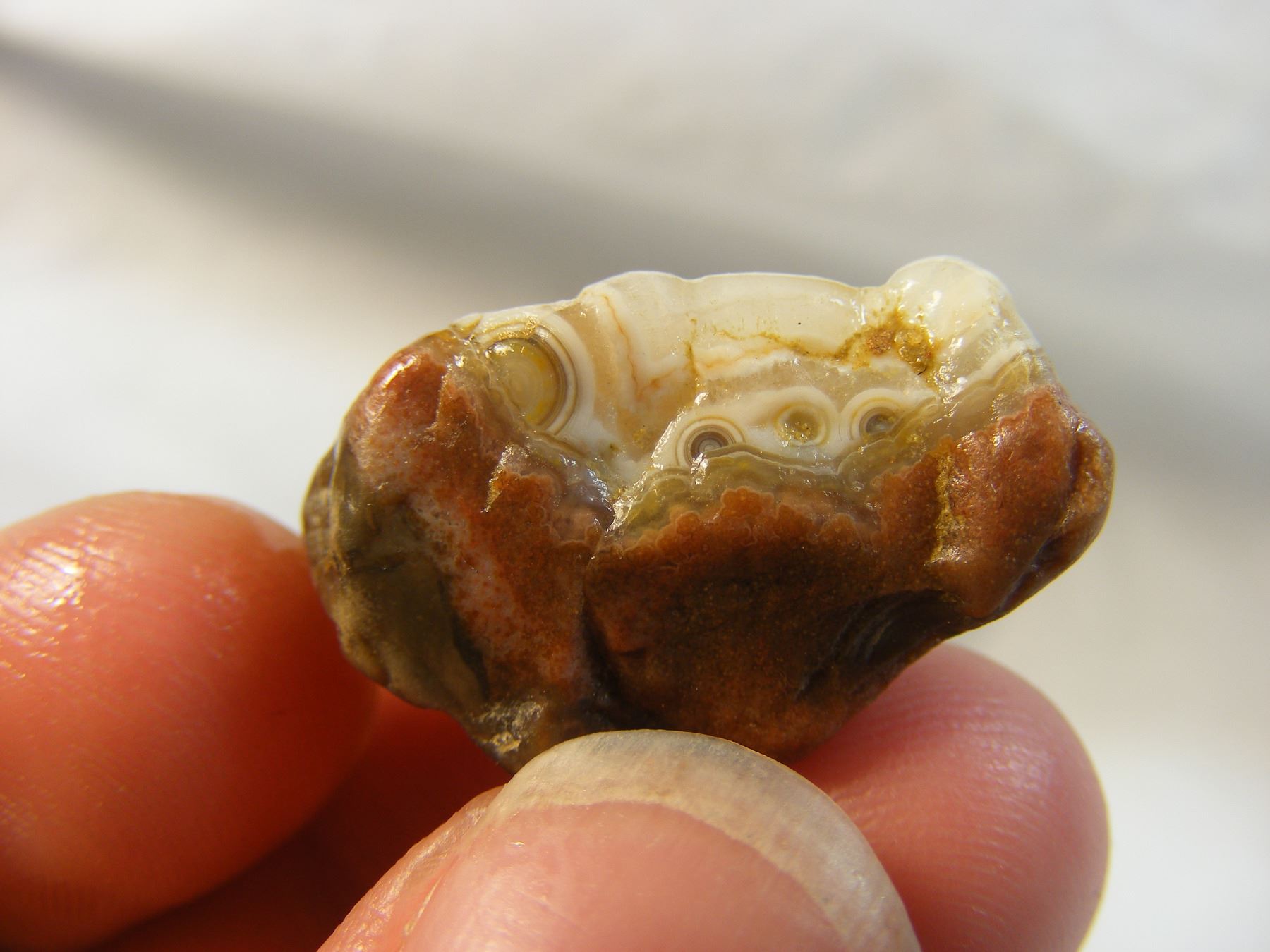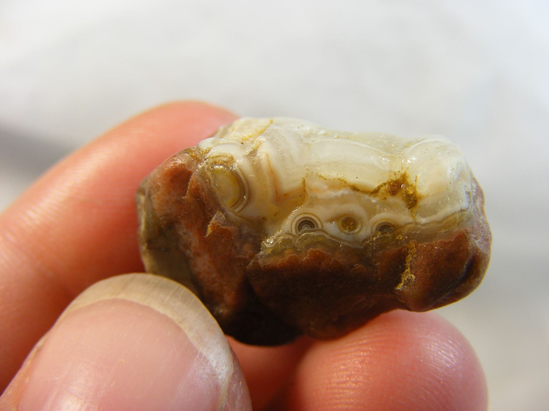 Interesting Fairburn Agate from South Dakota with small eyes peaking over banding.