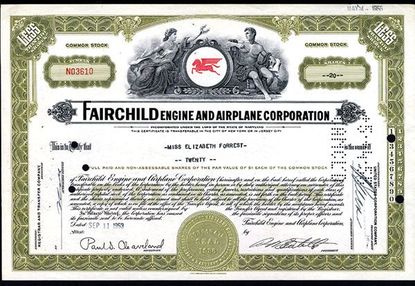 Fairchild Engine and Airplane Corp., 1953. I/C Stock.