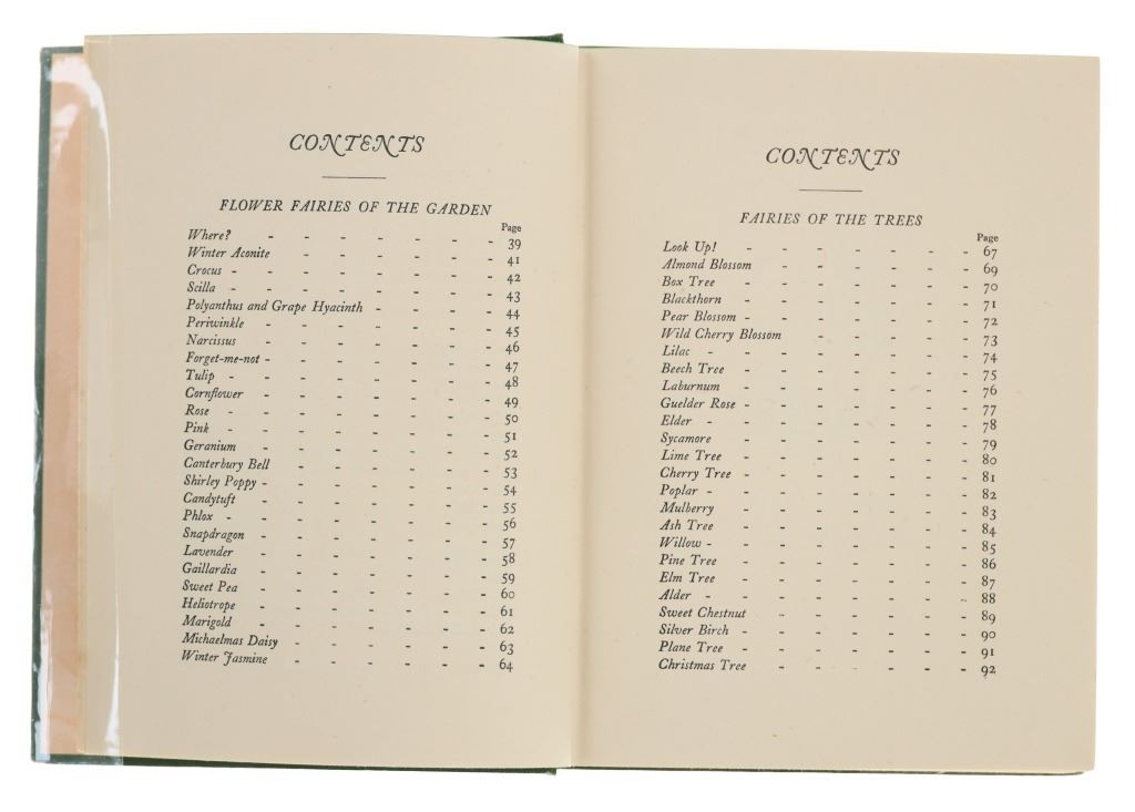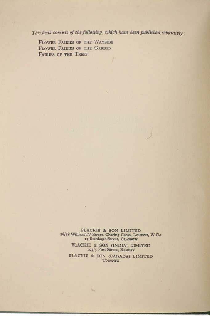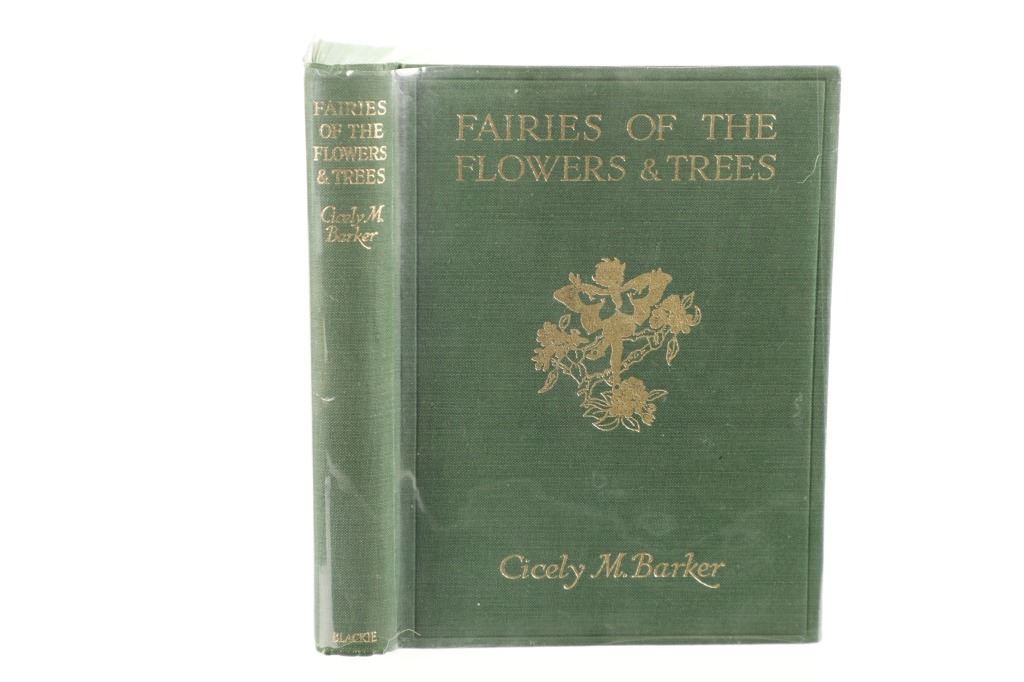 For your consideration is this 1950 1st edition of "Fairies of the Flowers & Trees" by Cicely M. Barker, published by Blackie & Son Limited in London and Glasgow. This book is an amalgamation of the three popular Flower Fairy books by the author and illustrator Cicely Mary Barker. The three books covered in this one edition are the earlier editions of, "Flower Fairies of the Wayside", "Flower Fairies of the Garden" and "Fairies of the Trees". The book is illustrated profusely with over 50 colored illustrations with corresponding poems to go with the art. The book shows a green cloth hardcover with the writing and image in gold gilt. It shows good condition on the outside and interior pages with little wear present and no signs of obvious damage. The book measures 7 3/8" L x 5 6/8" W x 1" D and weighs 14 ounces.