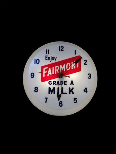 Fairmont Ice Cream Store light-up clock 1950's 18" diam.