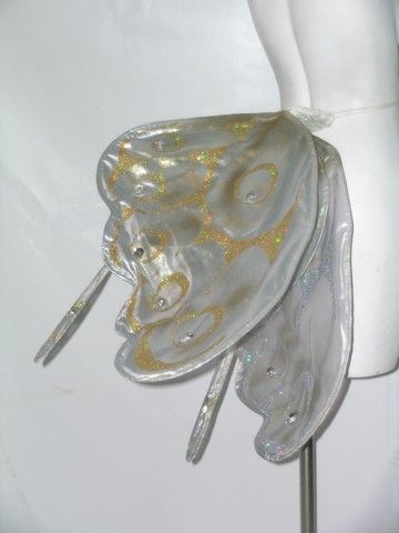 From New York costume designer Frankie Stein, these are a custom made pair of fairy wings. Fitted with a colorless string, these wings are silver, with ornate designs and faux jewelry to magical effect. Ms. Stein's work has been featured on stage, television, film & print, and she successfully owns and operates "Frankie Steinz" costume shop in New York. As a freelance costume designer, she later moved her business to New York City where her many clients include ABC, Sony, Disney and HBO, and celebrities Robert De Niro, Billy Joel and Dolly Parton, to name a few. Her work has been featured in The New York Times, Time Out magazine and People Online, and has been seen on The David Letterman Show, The View, Saturday Night Live, The Rosie O'Donnell Show, and Everybody Loves Raymond, and she is credited on the major Academy Award winning film 'Eternal Sunshine of the Spotless Mind.'