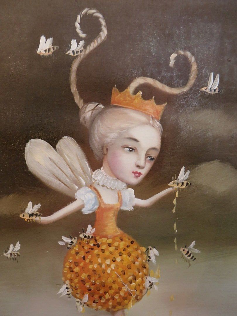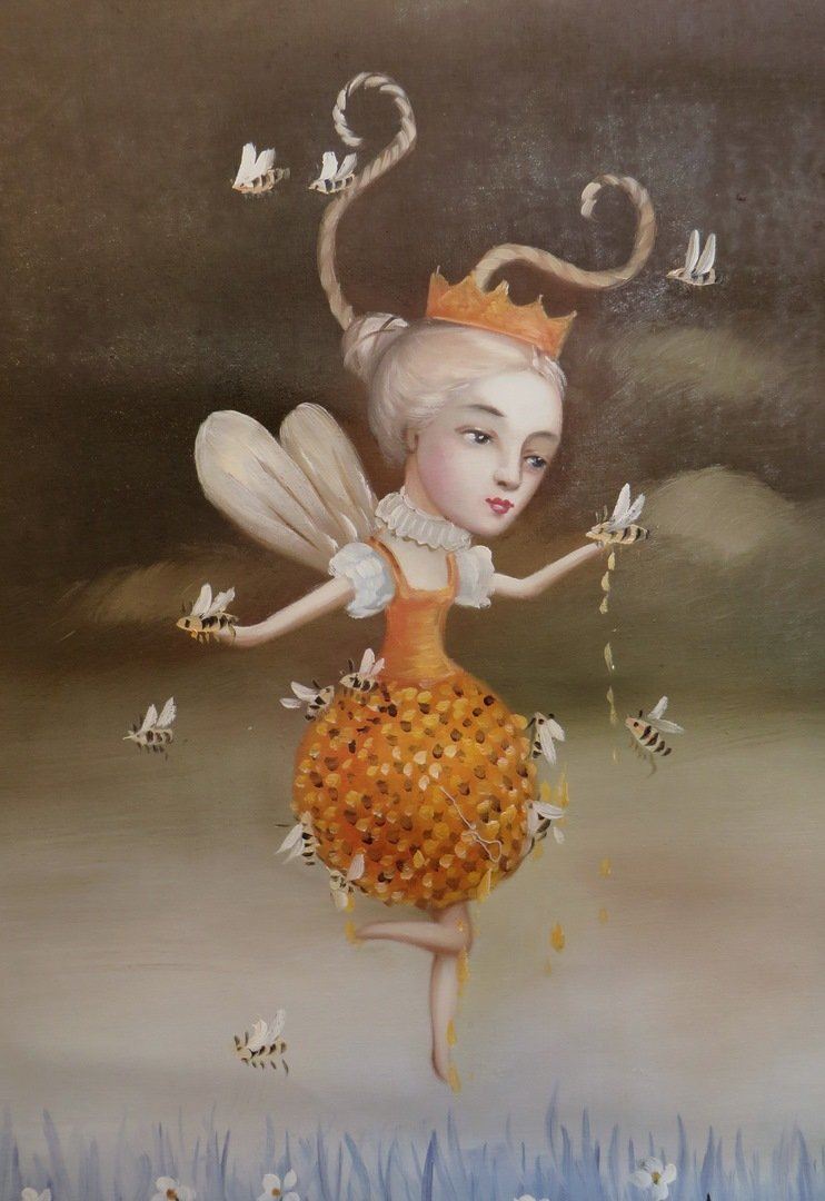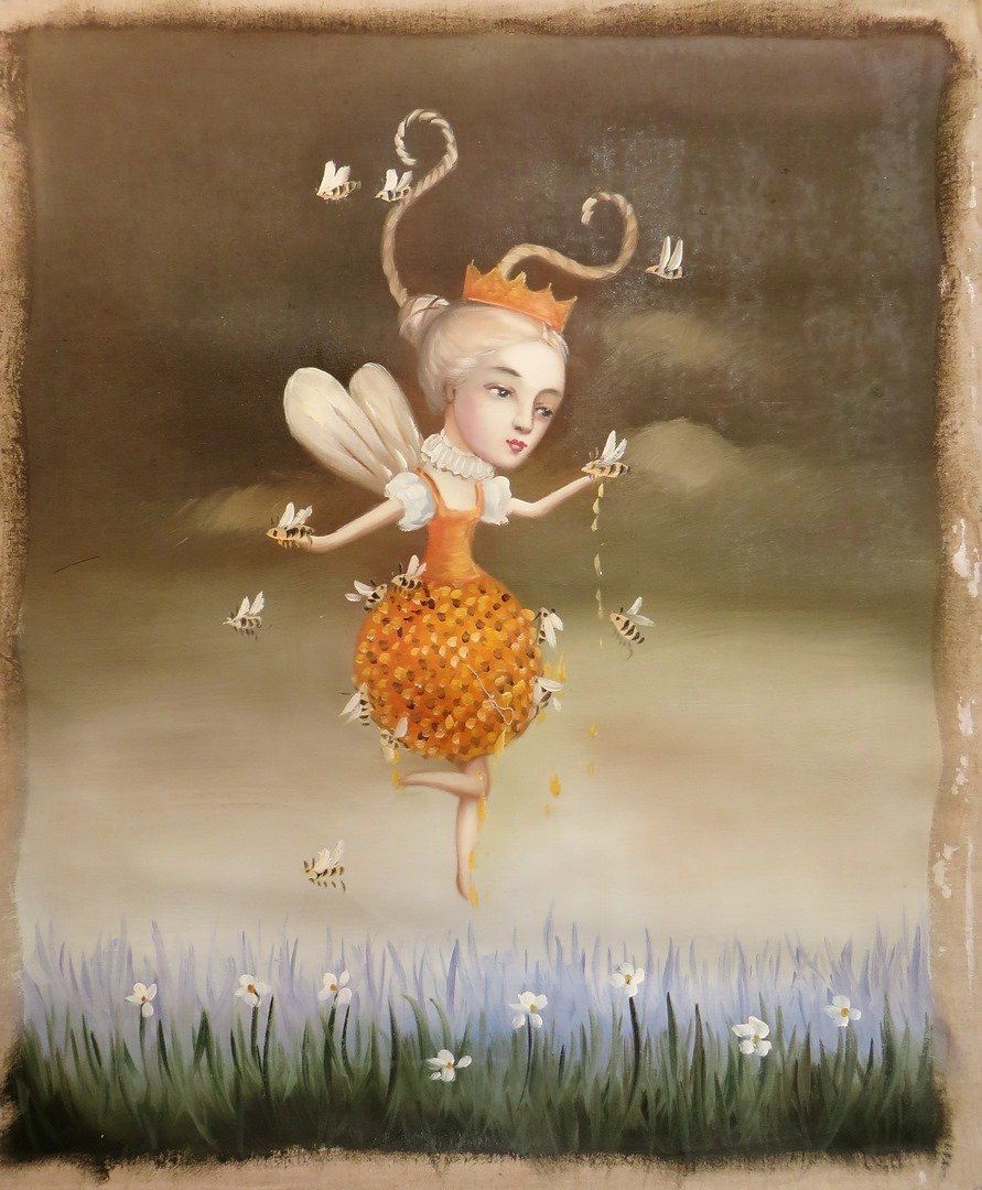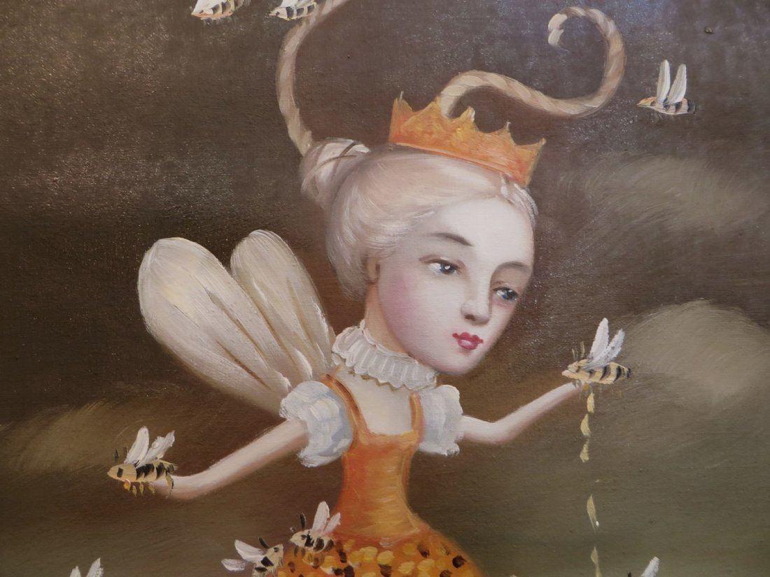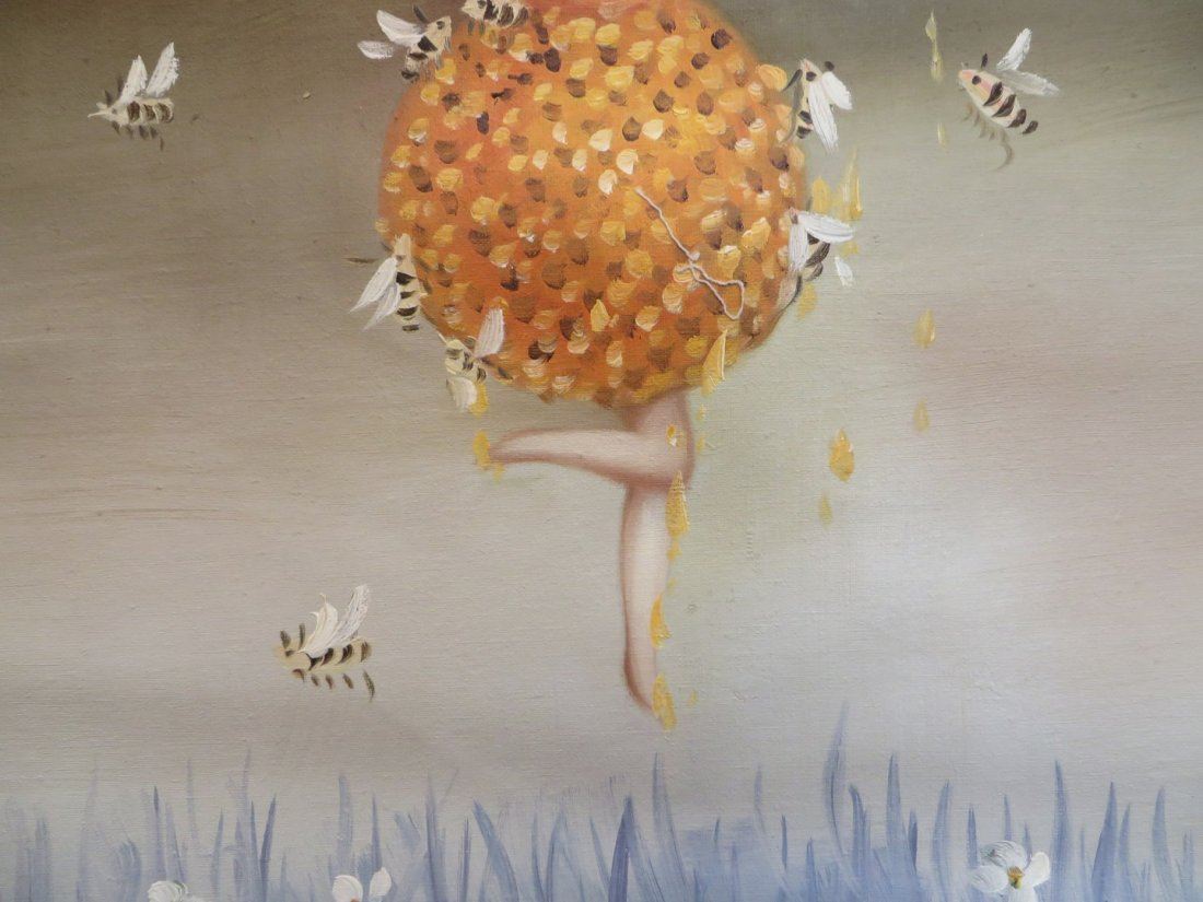 Surrealistic fairy queen emerging from beehive in field of daisies with a dark cloudy sky as the backdrop. NO RESERVE! ! Most items in this sale have no reserve