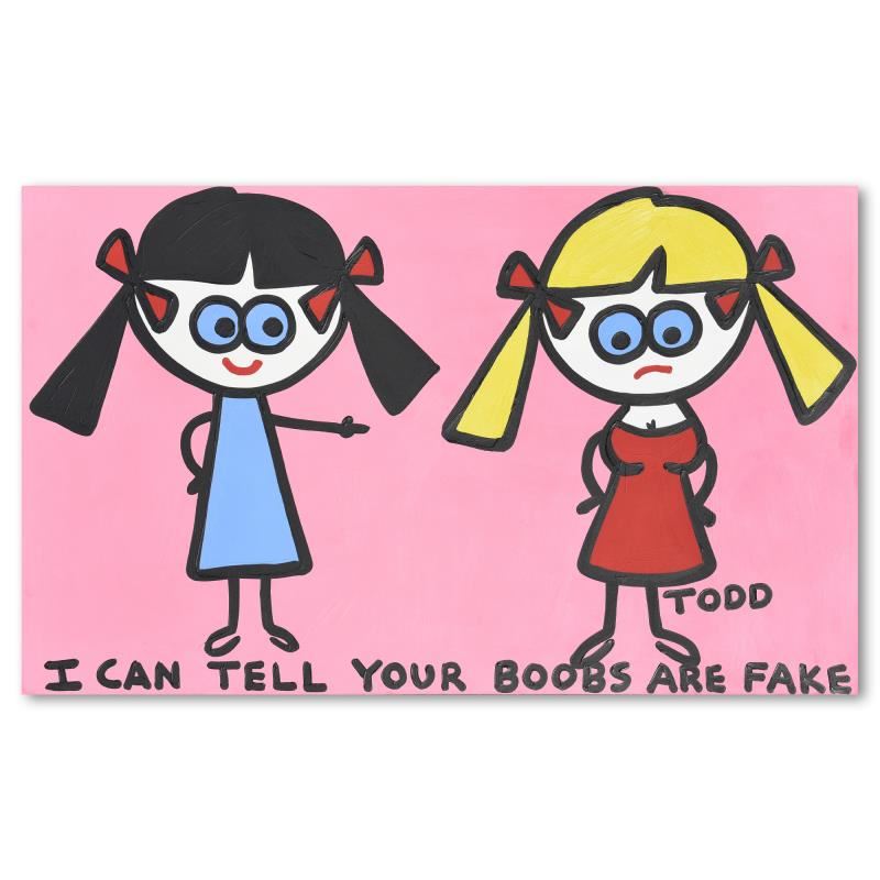 Fake B**** by Goldman Original. All available information is listed in the description and shown in the photo. We acquired this piece as part of a larger collection. We do not approve of its inappropriate content. "Fake B****" is an original acrylic painting on gallery wrapped canvas by Todd Goldman, hand signed by the artist. Includes Letter of Authenticity. Measures approx. 60" x 36" (image). Due to the way this piece was stored there may be minor wear or signs of age (such as wear on the corners) but the piece is in overall good condition.