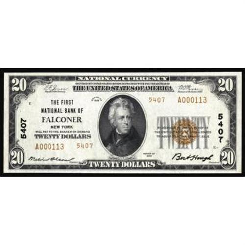 Falconer, NY. $20 1929 Ty. 2. The FNB. Charter #5407. Choice About Uncirculated.