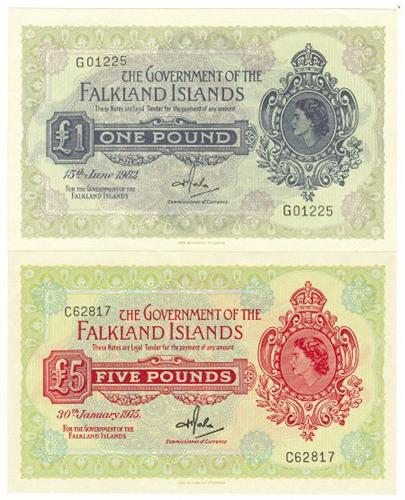 Falkland Islands, 1£ 1982, UNC & 5£ 197
