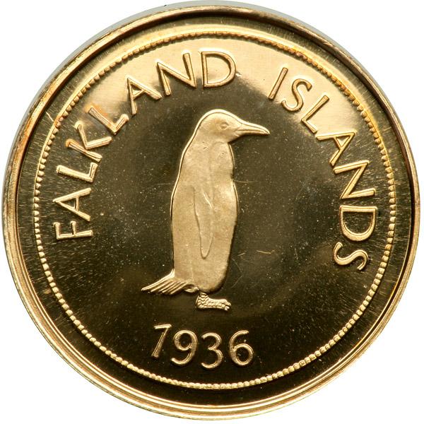 Falkland Islands. Sovereign, 1936. KM- X#M4. 4.7 grams. 0.375 fine gold. Richard Lobel Series. Mintage 200 pieces. Edward VIII, bust left. Reverse: Penguin standing right. Choice Brilliant Proof.