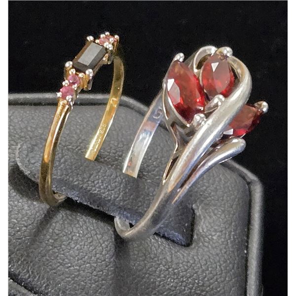 Two Sterling Silver Rings. One with Garnet is a size 9 and one with black Alaskan stone is gold plated and is a size 8.