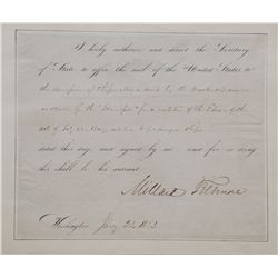 13th President of the U.S. DS as president, dated January 25, 1853. Here he remits “the penalties incurred by the master and owner or owners of the “T