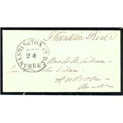 14th President of the United States. Nice Free Frank signature on a mourning bordered envelope by Pierce. Date stamp Nov. 24th form Washington D.C. Fi