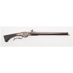 Impressive cased Sharps Breech-Loading Single Shot pistol, Second Type, .36 cal., 6-1/2” round barrel, blue finish, wood grips, backstrap period in