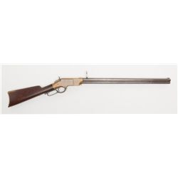 Highly desirable Henry lever action rifle, .44 cal., 24” octagon barrel, blue finish, brass frame, #4288 in overall very good condition showing a p