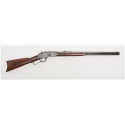Winchester Model 1873 lever action rifle, .44 W.C.F. cal., 24” octagon barrel, blue finish, 7-leaf rear sight, set trigger, sling swivel on the but