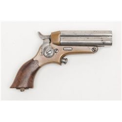 Starr four barrel pepperbox derringer, .32 cal., 2-3/4” barrels, brass frame, wood grips, #1 under barrel group. This gun is in overall very good