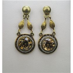 Lovely Heirloom Yellow Zircon and Pearl Earrings with 2 round Zircons weighing approx. 6.00 carats intricately encircled with seed Pearls and filig