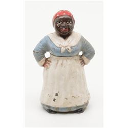 Cast iron and polychrome painted doorstop in the figure of aunt Jemima standing approximately 9 ¼” tall in good condition with some minor los...