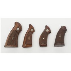 Lot of 4 pair of Smith & Wesson wood revolver grips including a pair of checkered wood medallion grips for a K-frame; a pair of checkered wood...