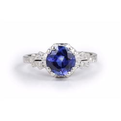 Centered is a beautifully cut old European-cut diamond, weighing approximately 1.15 carats, with J-K color and VS clarity, accented by numerous synthe