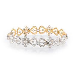 Delicate Edwardian diamond bangle with a flowing ribbon design, bezel and pav set with 130 old mine cut diamonds weighing approximately 7.1 carats tot