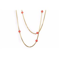 18K yellow gold ring set with a natural untreated coral, salmon color, 18mm wide. Coral contains a natural divet, which is well hidden in the setting.