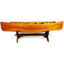 Hand crafted miniature canoe coffee table with removable inset glass top. A great piece to display your fishing lure collection. Measures 60" ...