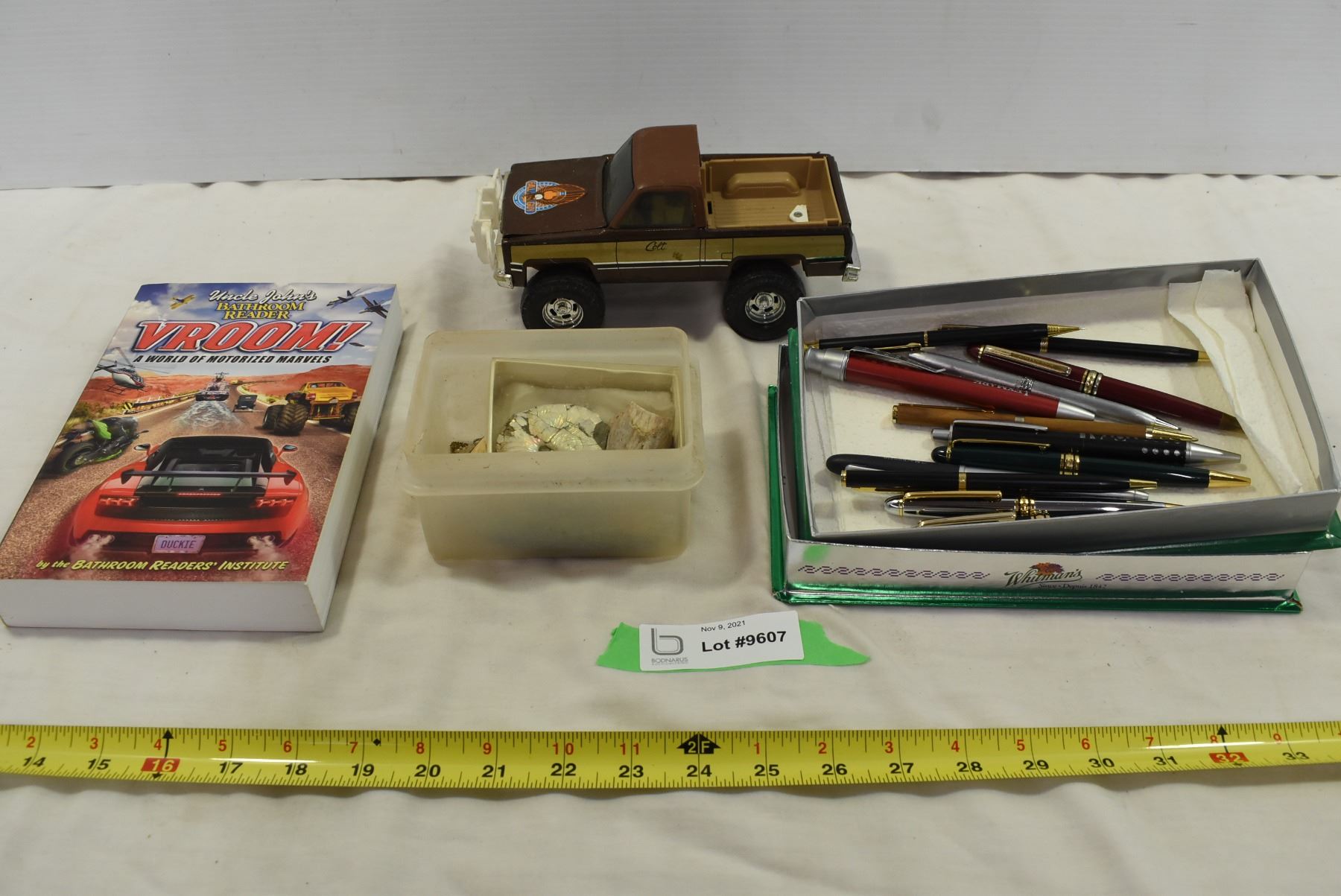 Model Truck, Vroom! Book, Pens, Fish hooks, Misc.