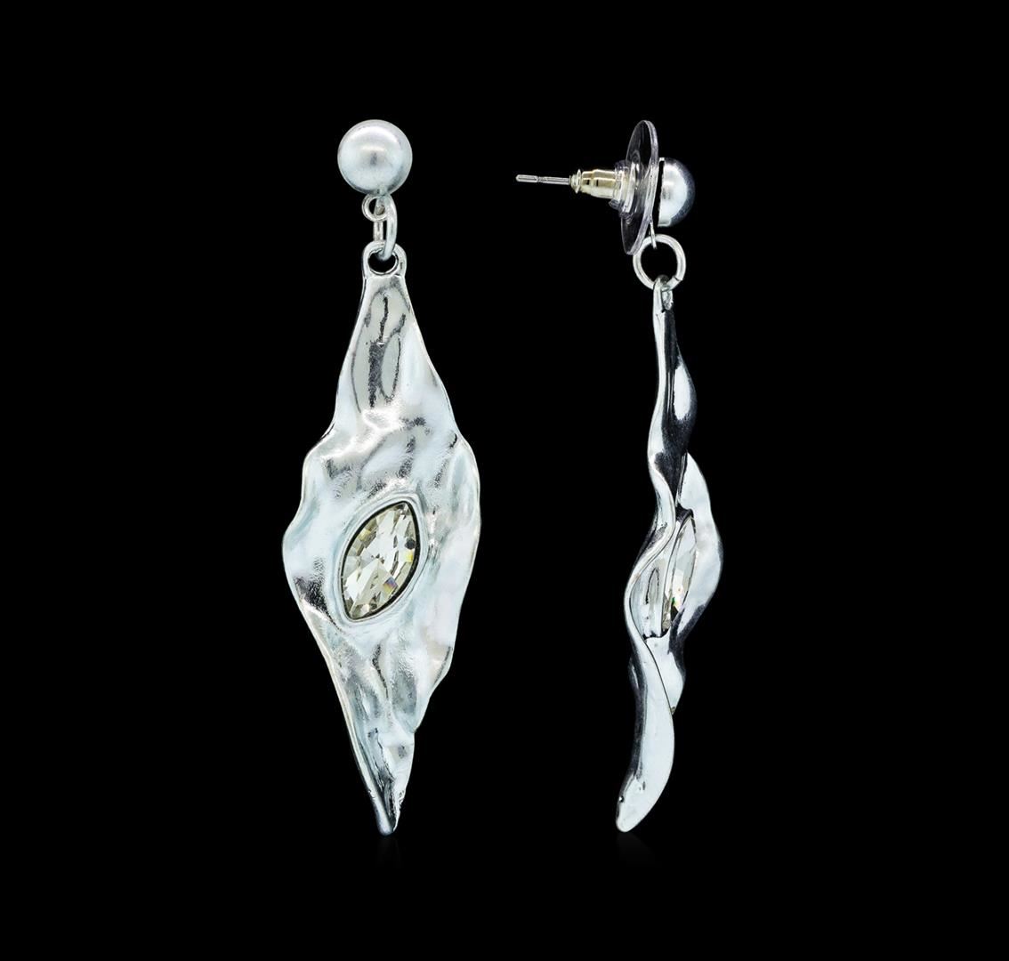 High end designer jewelry. Fall Leaf Crystal Earrings - Rhodium Plated. Rhodium Plated Metal/2.25" Dangle. Silver/ Clear. Post. Total Weight: 7.8 grams.