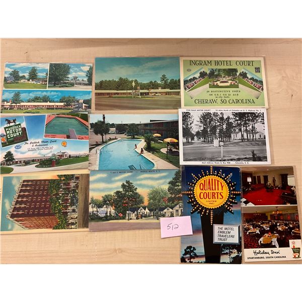 70 South Carolina postcards. Many hotels, motels, roadside, etc. Linen to chrome.