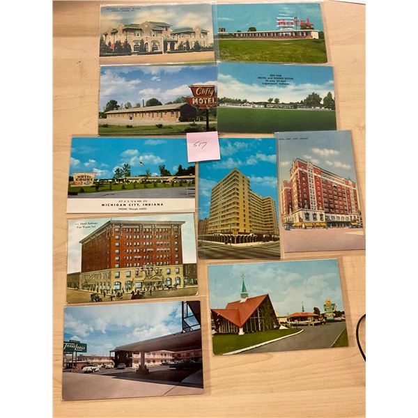 Over 75 postcards of Indiana. Many hotels, motels, roadside, etc. Linen to chrome.