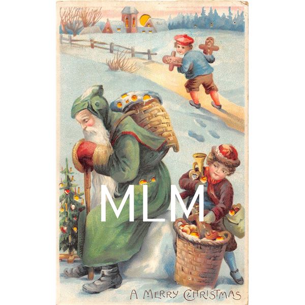 2 Santa Hold to Lights Purple & Green Robes Postcards544 - 2 Santa Hold to Lights Purple & Green Robes Postcards