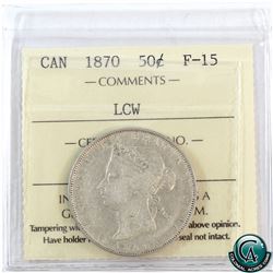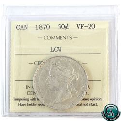 50-cent 1870 LCW ICCS Certified VF-20. A nice problem free coin.830 - 50-cent 1870 LCW ICCS Certified VF-20. A nice problem free coin.