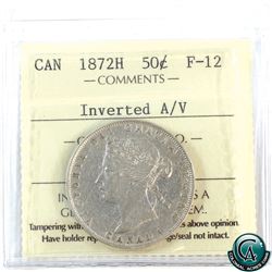 50-cent 1872H Inverted A/V ICCS Certified F-12. A nice example of a scarce variety.839 - 50-cent 1872H Inverted A/V ICCS Certified F-12. A nice example of a scarce variety.