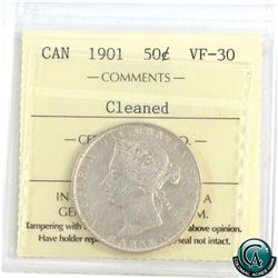 50-cent 1901 ICCS Certified VF-30 (cleaned).851 - 50-cent 1901 ICCS Certified VF-30 (cleaned).
