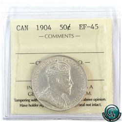 50-cent 1904 ICCS Certified EF-45. A bright coin with hints of mint luster.