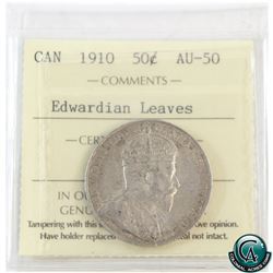 50-cent 1910 Edwardian Leaves ICCS Certified AU-50867 - 50-cent 1910 Edwardian Leaves ICCS Certified AU-50