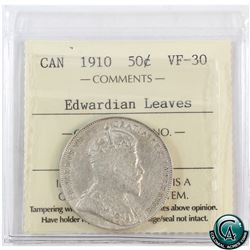 50-cent 1910 Edwardian Leaves ICCS Certified VF-30.868 - 50-cent 1910 Edwardian Leaves ICCS Certified VF-30.