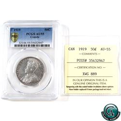50-cent 1919 PCGS/ICCS Certified AU-55 (Cross Graded)878 - 50-cent 1919 PCGS/ICCS Certified AU-55 (Cross Graded)