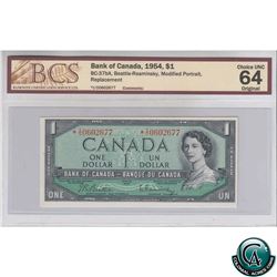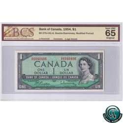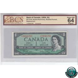 BC-37bA 1954 Bank of Canada $1, Beattie-rasminsky, Modified Portrait, Replacement, *I/O 0602677, BCS CUNC-64 Original