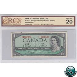 1303 - BC-37bA-i 1954 Bank of Canada $1, Beattie-Rasminsky, Modified Portrait, Replacement, *AM 0004050, CUColonial Acres Coins Ltd.