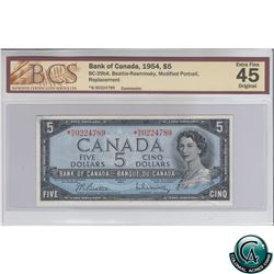 1316 - BC-39aA-i 1954 Bank of Canada $5, Beattie-Coyne, Modified Portrait, Replacement, *RC 0007383, BCS AUColonial Acres Coins Ltd.