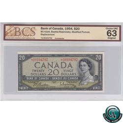 1333 - BC-41bA 1954 Bank of Canada $20, Beattie-Rasminsky, Modified Portrait, Replacement, * AE 0104792, BCColonial Acres Coins Ltd.