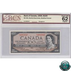 BC-43b 1954 Bank of Canada $100, Beattie-Rasminsky, B/J4082647, Modified Portrait, Changeover, BCS Certified CUNC-62, Original