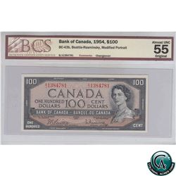 1337 - BC-43b 1954 Bank of Canada $100, Beattie-Rasminsky, B/J1384781, Modified portrait, BCS AU-55, OriginColonial Acres Coins Ltd.