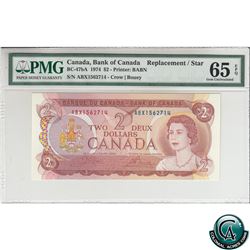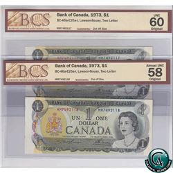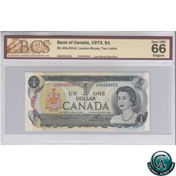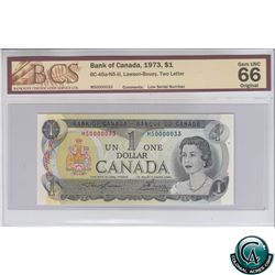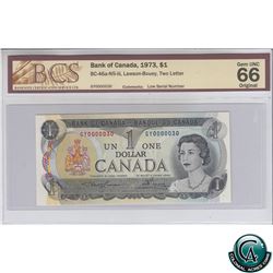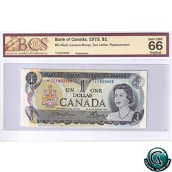 1342 - BC-46aA 1973 Bank of Canada $1, Lawson-Bouey, Two letter, Replacement, *IL1803608, BCS GUNC-66 OrigiColonial Acres Coins Ltd.