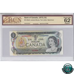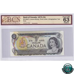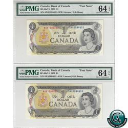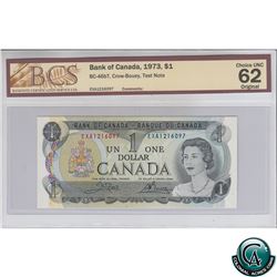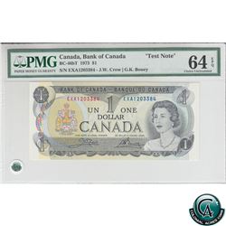 BC-46aT-i 1973 Bank of Canada $1, Lawson-Bouey, Three Letter,Steel engraved, Test Note, AXA0715675, BCS UNC-60, Original