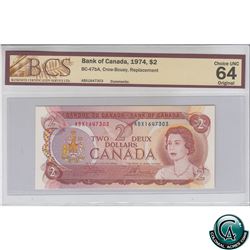BC-46aA 1973 Bank of Canada $1, Lawson-Bouey, Two Letter, Replacement, *GL3559444, BCS CUNC-64 Original